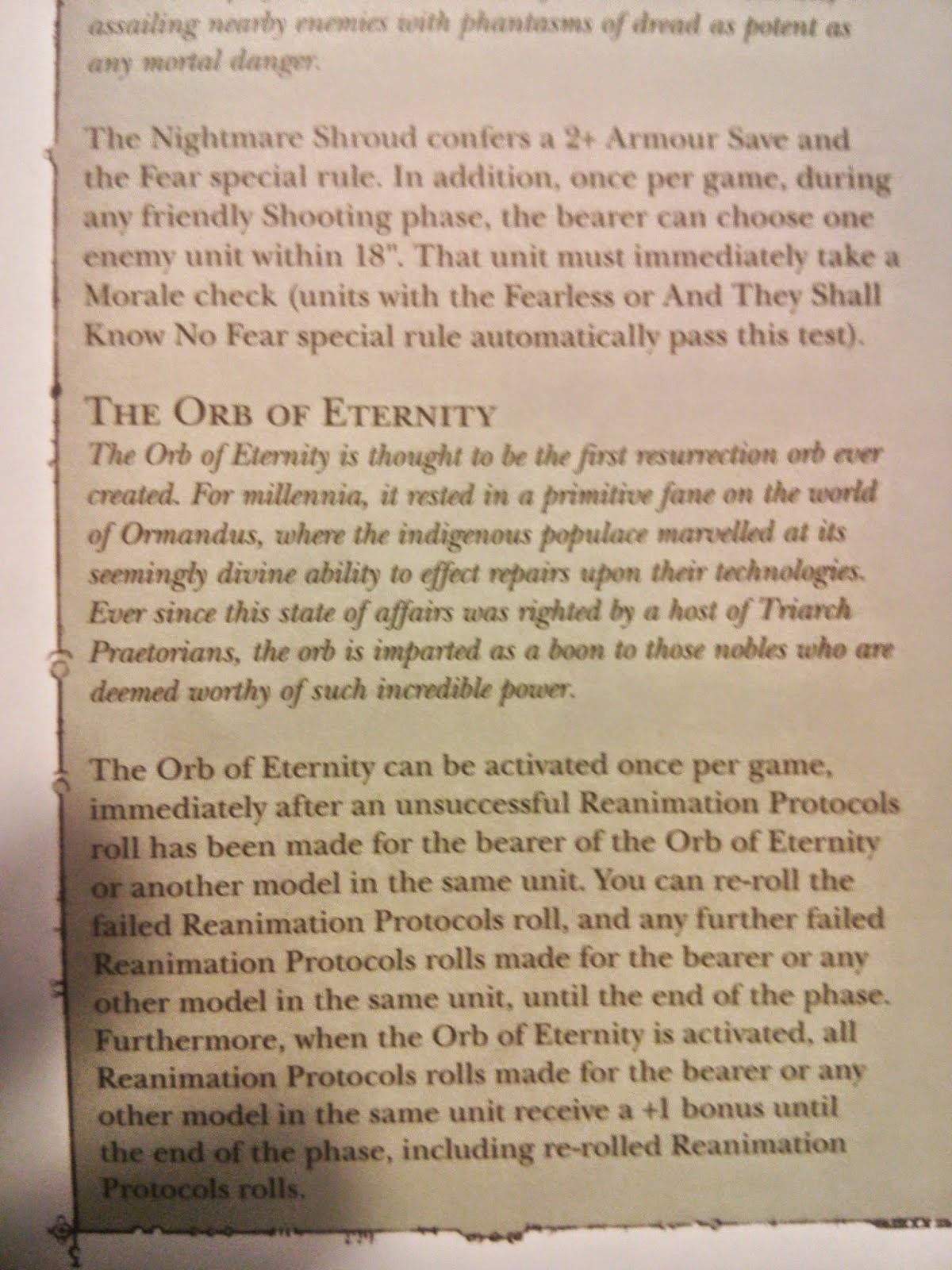 Fleshbane, Gaze of Death: In addition to shooting Powers of the C'tan, can target one non-vehicle enemy within 12" and in LOS. Unit takes wounds of 3D6 - Ld, resolved at AP2 and Ignores Cover. Nightbringer restores one wound if a wound is inflicted.